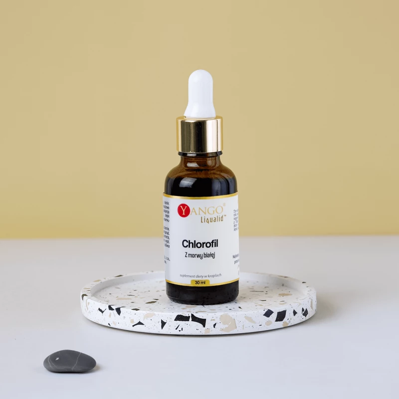 Chlorophyll from YANGO is a unique dietary supplement in drops, containing chlorophyllin from white mulberry and mint oil. Chlorophyll, often referred to as the green blood of plants due to its similarity to hemoglobin, is crucial in their photosynthesis process. It also shows beneficial support for the functioning of many human body systems.