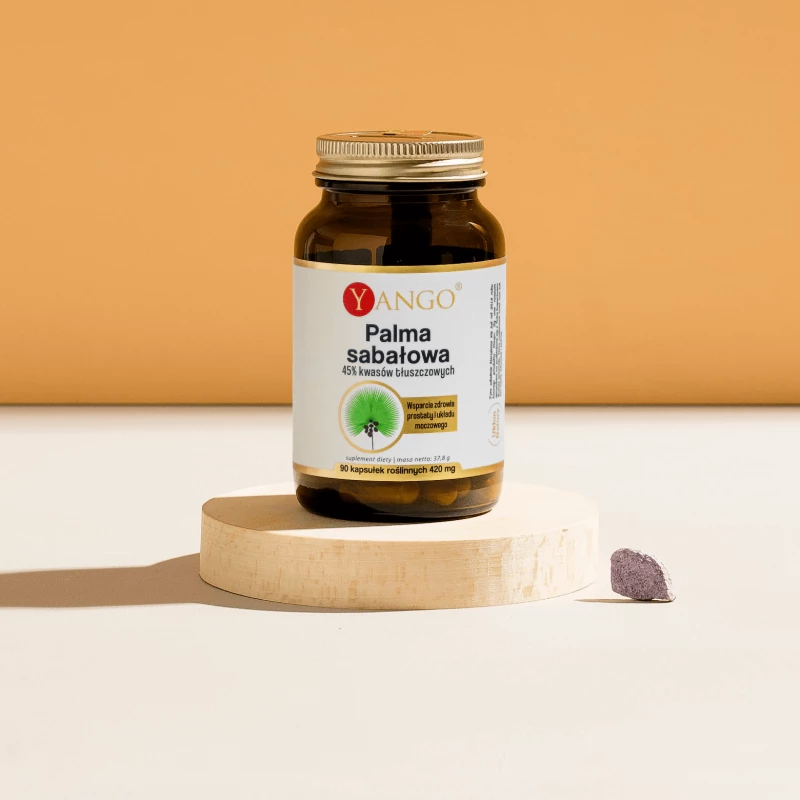 Sabal palm, thanks to its high content - as much as 45% - of fatty acids, known for their positive effects on prostate and urinary tract functions, supports the health of men struggling with prostatic hypertrophy. What's more, sabal palm is also helpful in cases of androgenetic alopecia, as it inhibits, responsible for it, the action of dihydrotestosterone.