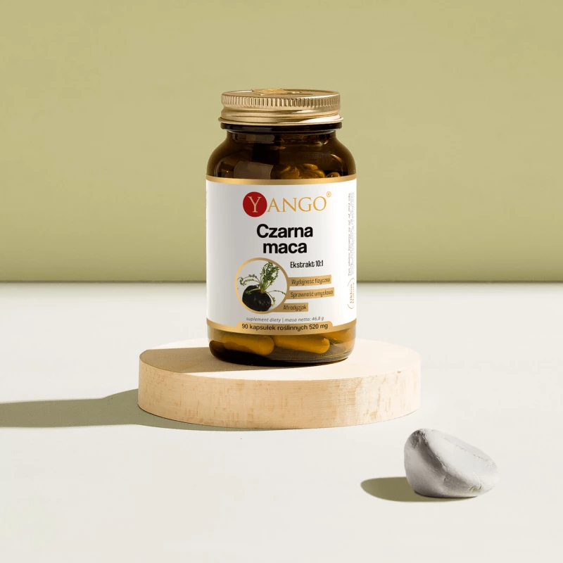 Składniki: ekstrakt z korzenia czarnej odmiany maca (Lepidium meyenii) 10:1.