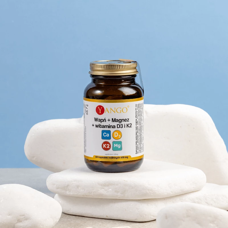 Składniki: cytrynian wapnia (wapń), cytrynian magnezu (magnez), mikrokapsułkowana witamina D3 (maltodekstryna, nośnik: sól sodowa oktenylobursz-tynianu skrobiowego; olej słonecznikowy, cholekalcyferol), substancja wypełniająca: celuloza mikrokrystaliczna; menachinon-7 (Witamina K2-MK7).